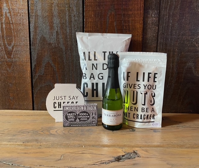 Cava piccolo,party spel,kaaspuntjes,nootjes