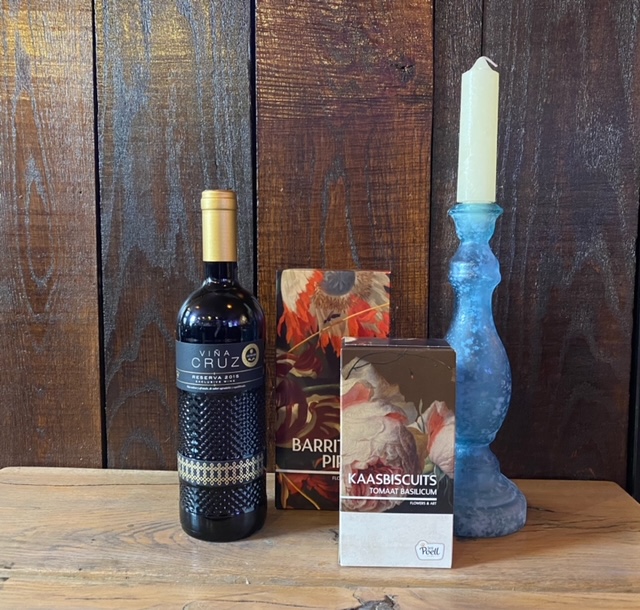 Vina Cruz,kandelaar,set kaarsen,kaasbisquits,barritas